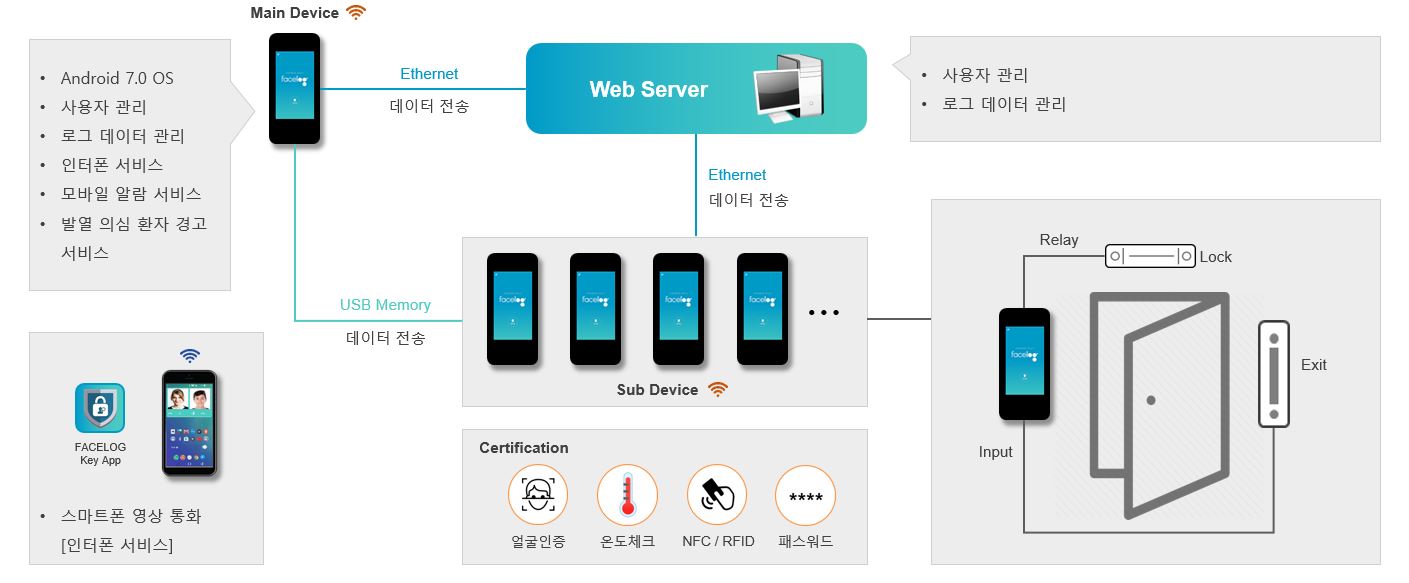 | Max. User (1:1) | 10,000名以上 以1:1的情况为例,输入用户员工编码以后进行认证,因此,适合人员多的建设现场等 (在韩国大企业的物流中心适用同样的方式。) |